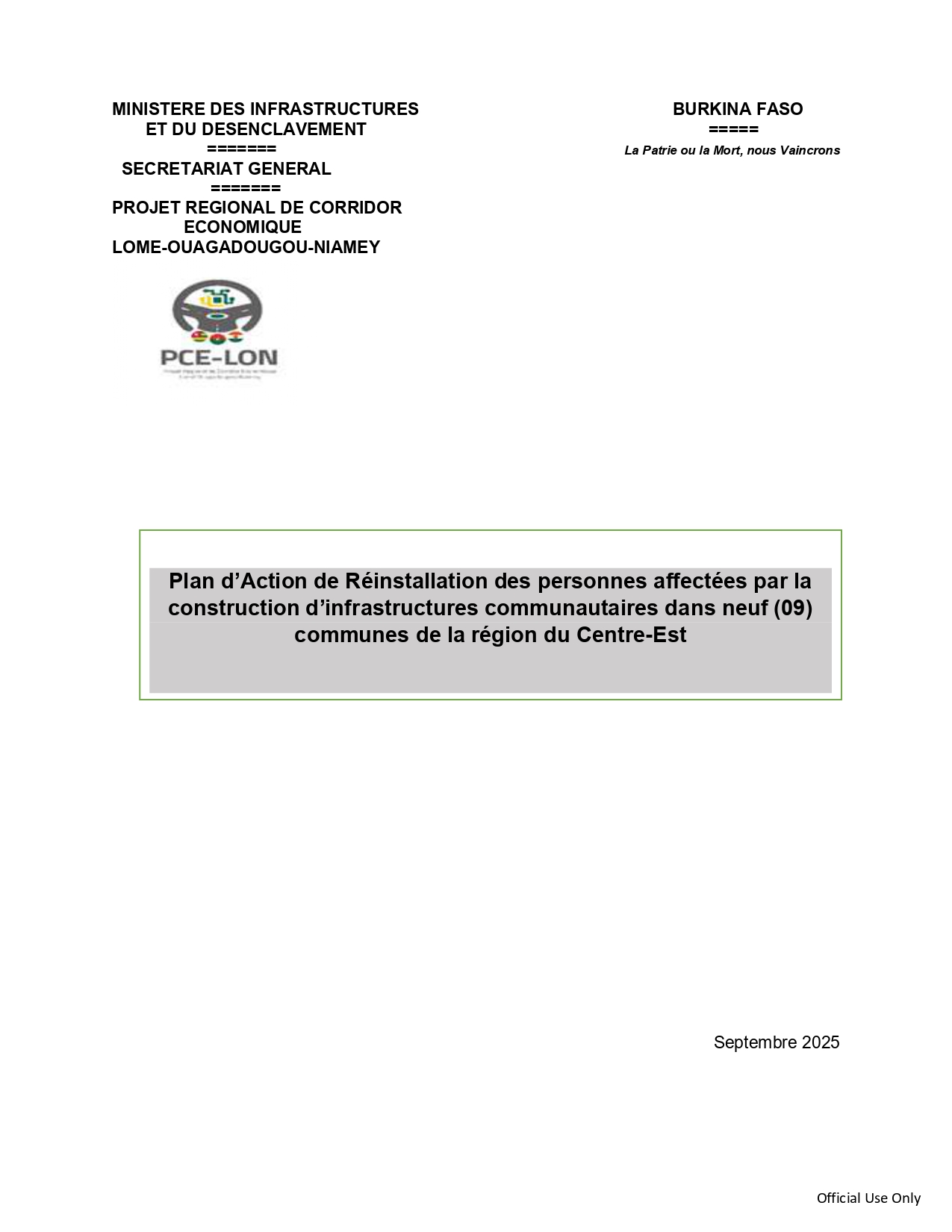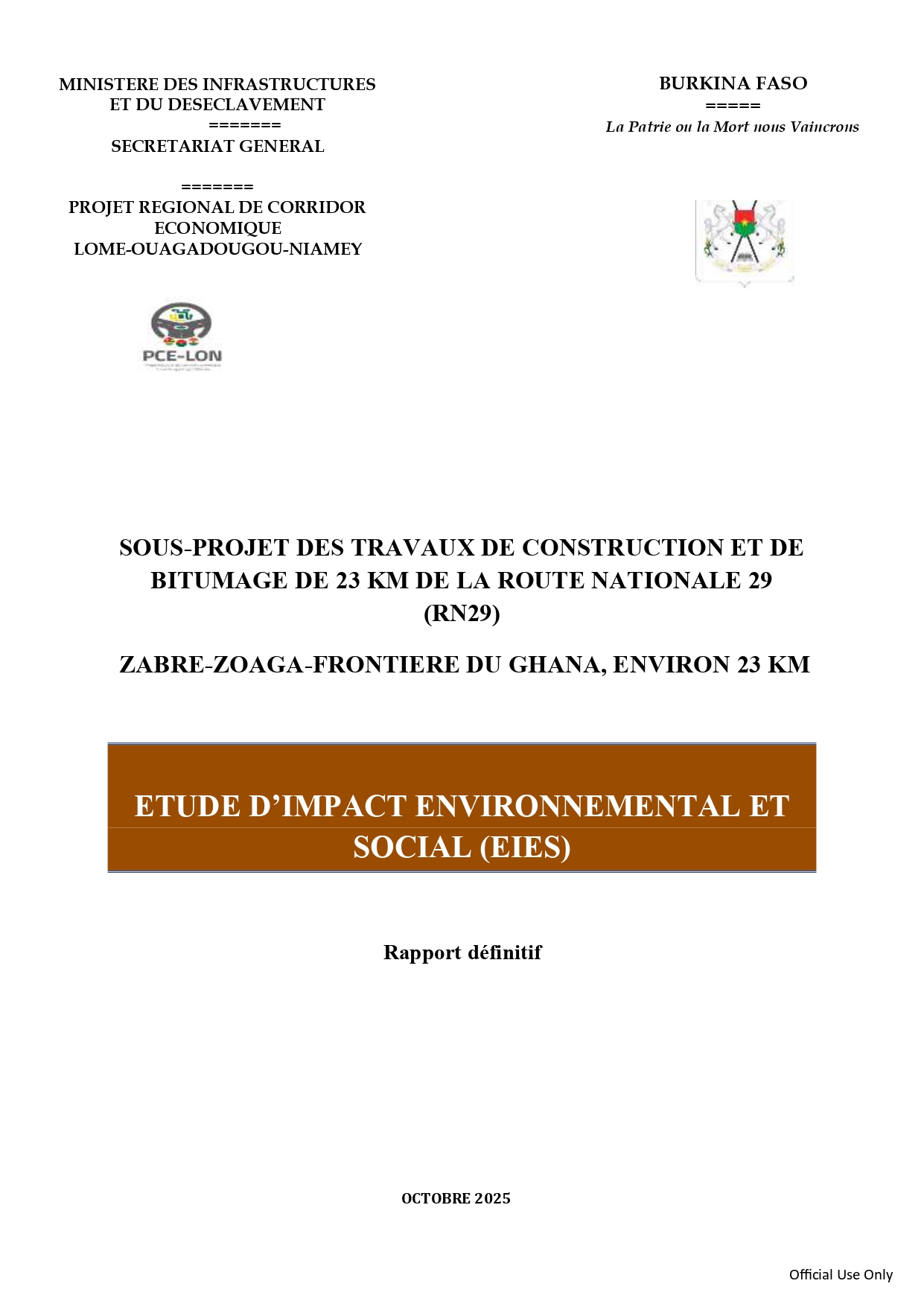 Rapport d'étude d'impact environnemental et social de la RN29 - Zabré - Zoaga - Frontière du Ghana Plan d'action de réinstallation des infrastructures socioéconomiques Etudes techniques Etudes techniques Etudes techniques Etudes techniques Etudes techniques Etudes techniques Etudes techniques Etudes techniques Etudes techniques Etudes techniques Etudes techniques Etudes techniques